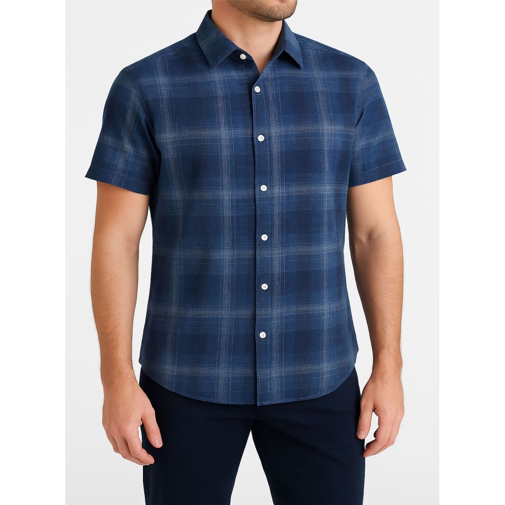 CAMISA LINO CUADROS MANGA CORTA SIN BOLSILLO.