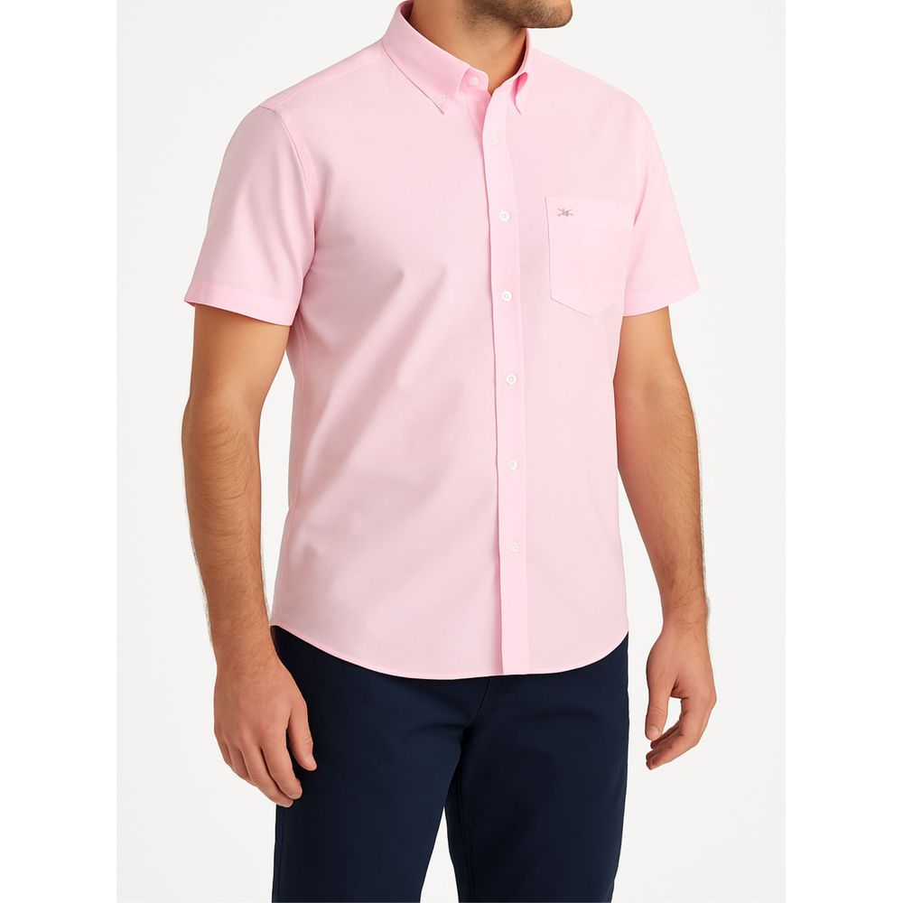 Camisa poplin liso soft manga corta con bolsillo. 100% algodón. Poplin. Referencia modelo altura 1.83 talle M. Regular fit