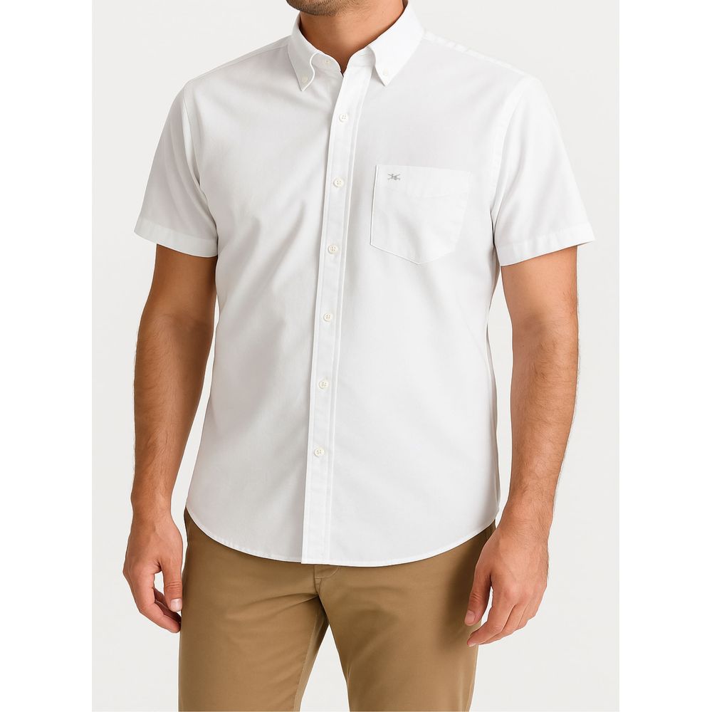 Camisa poplin liso soft manga corta con bolsillo. 100% algodón. Poplin. Referencia modelo altura 1.83 talle M. Regular fit