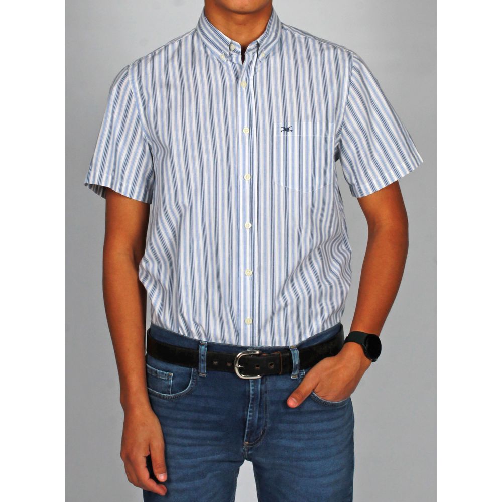 CAMISA POPLIN RAYAS MANGA CORTA CON BOLSILLO