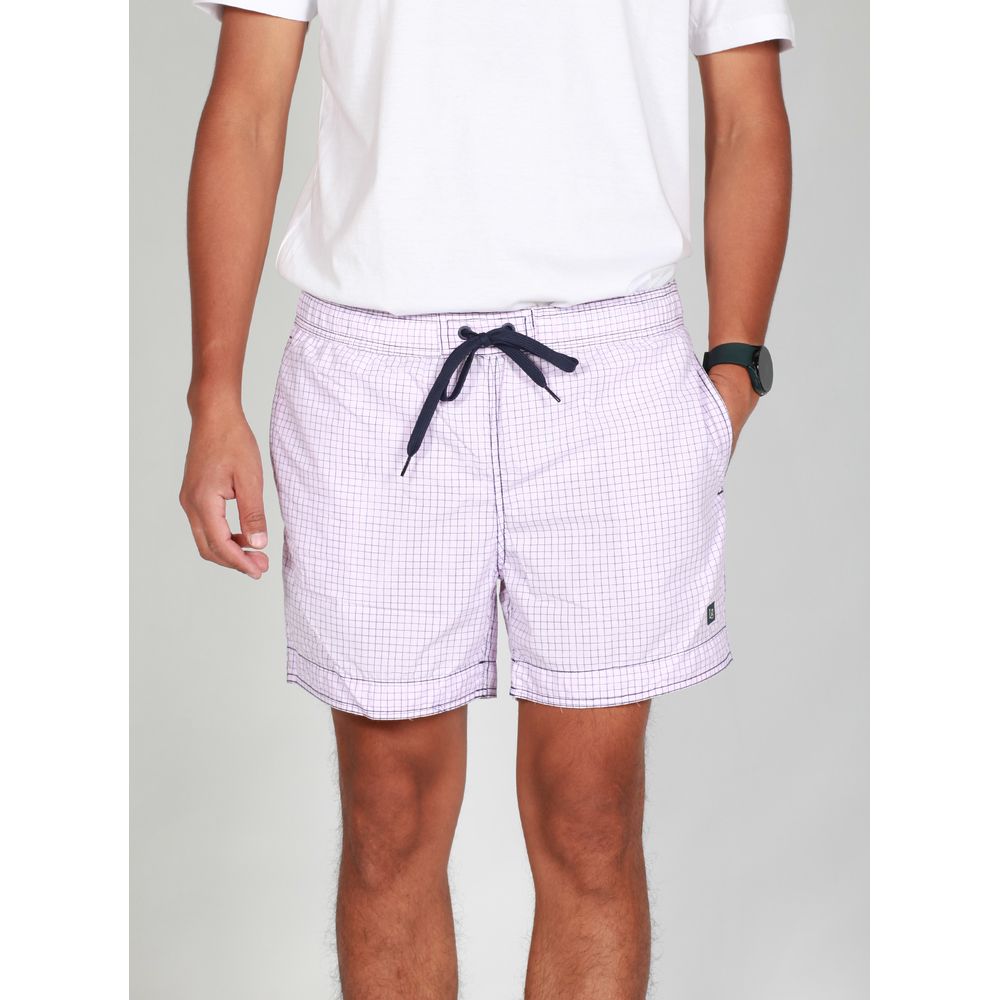 SHORT DE BAÑO A CUADROS CINTURA ELASTIZADA.