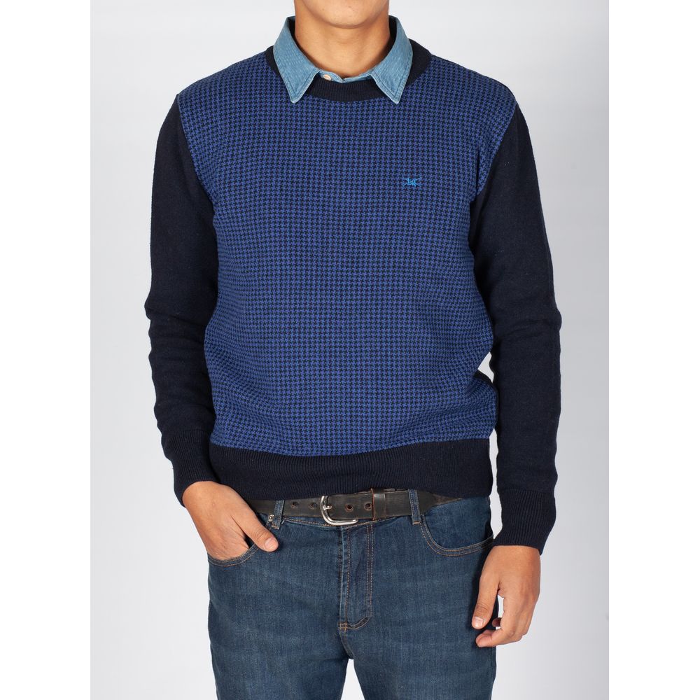 SWEATER ESCOTE REDONDO BARRY COMBINADO - COLOR: AZUL - TALLE: XL