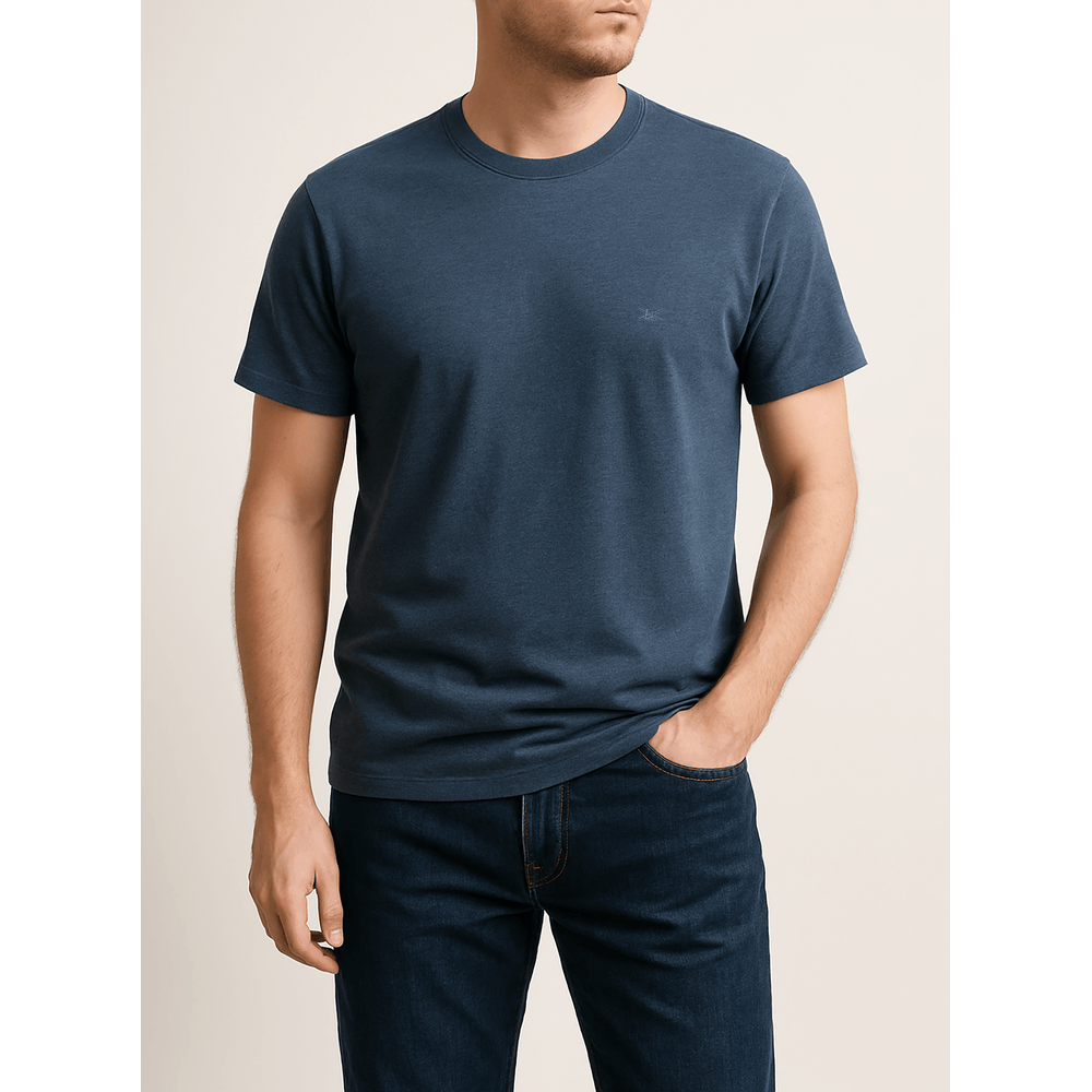 Remera t-shirt manga corta lisa básica, confeccionada en 100% algodón, el modelo mide 1.83 y está usando talle M